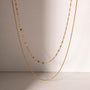 दो परतों वाले खूबसूरत नेकलेस के साथ अपनी खूबसूरती का परिचय दें, जिसमें दो नाज़ुक परतें हैं: एक साधारण पतली चेन वाली और दूसरी मुड़ी हुई पतली चेन वाली। यह बहुमुखी आभूषण काम और कैज़ुअल, दोनों तरह के पहनावे के लिए एकदम सही है, और किसी भी पोशाक में सहजता से एक नयापन भर देता है। 18 कैरेट सोने की परत से बना यह नेकलेस दाग-धब्बों से बचाता है और वाटरप्रूफ भी है, जिससे यह आपके गहनों के संग्रह में हमेशा के लिए समाहित हो जाता है। चाहे आप ऑफिस जा रहे हों या किसी कैज़ुअल दिन का आनंद ले रहे हों, अपने लुक को पूरा करने के लिए इसे हमारे मैचिंग ब्रेसलेट और इयररिंग्स के साथ पहनें।