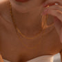 दो परतों वाले पेपर क्लिप नेकलेस के साथ अपनी विशिष्टता को अपनाएँ, जिसमें एक चेन विशिष्ट पेपर क्लिप डिज़ाइन वाली है और दूसरी पतली, सुंदर चेन। यह ट्रेंडी नेकलेस पश्चिमी परिधानों के लिए एकदम सही है, जो किसी भी पोशाक में एक आधुनिक स्पर्श जोड़ता है। 18 कैरेट सोने की परत से बना, यह नेकलेस दाग-धब्बों से बचाता है और वाटरप्रूफ भी है, जिससे यह आपके आभूषण संग्रह में हमेशा के लिए समाहित हो जाता है। अपने आकर्षक और आधुनिक लुक को पूरा करने के लिए इसे बोल्ड इयररिंग्स और ब्रेसलेट के साथ पहनें। यह बहुमुखी नेकलेस आपकी स्टाइल को निखारने और उसे और भी आकर्षक बनाने के लिए डिज़ाइन किया गया है।