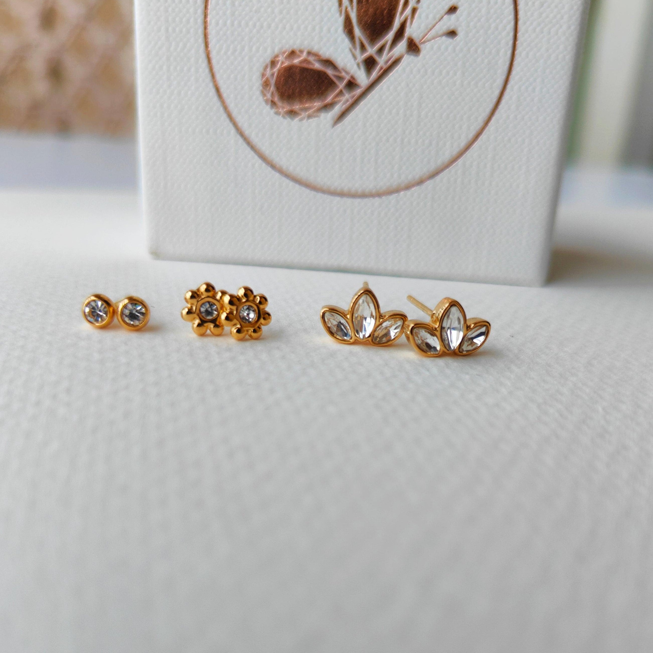 3 इयररिंग सेट - सेमी फ्लावर ज़िरकोनिया