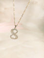 ज़िरकोन रत्नों से सजे अनंत प्रतीक पेंडेंट वाली पतली चेन वाले 8 आकार के पेंडेंट नेकलेस के साथ कालातीत सुंदरता से चमकें। यह उत्तम आभूषण शाम के अवसरों के लिए एकदम सही है, जो साड़ियों और पश्चिमी परिधानों, दोनों में चमक का स्पर्श जोड़ता है। 18 कैरेट सोने की परत से बना, यह नेकलेस दाग-धब्बों से बचाता है और वाटरप्रूफ भी है, जिससे यह आपके आभूषण संग्रह का एक स्थायी हिस्सा बना रहता है। चमचमाते ज़िरकोन रत्नों को निखारने के लिए इसे काले रंग के परिधानों के साथ पहनें, जिससे आप सहज रूप से चमक उठेंगे। अपने लुक को मैचिंग पीस के साथ पूरा करने के लिए ज़िरकोन स्टोन एक्सेसरीज़ के हमारे संग्रह को देखें।