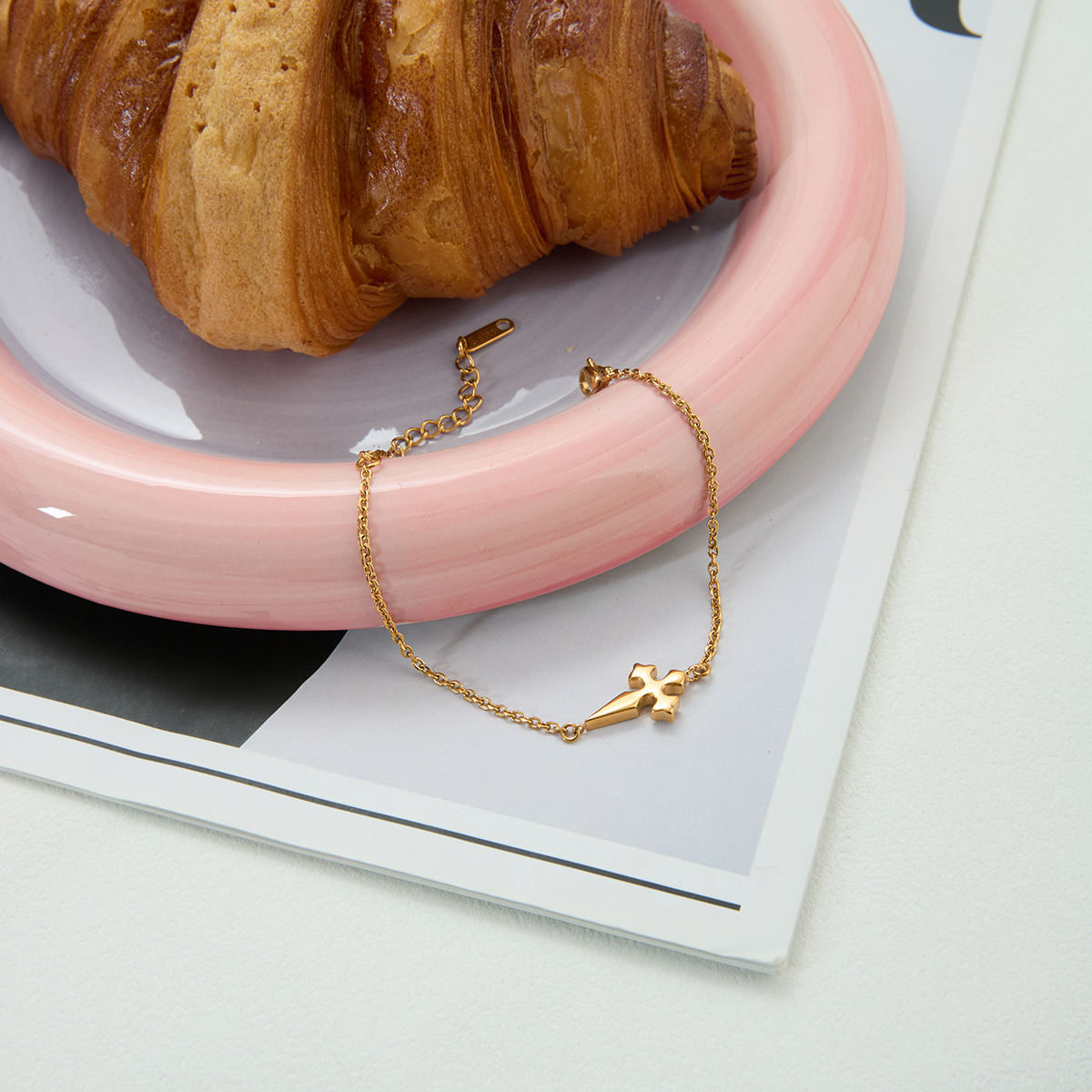 Shine bright like a celestial wonder with the Aurora Cross Bracelet! Crafted with luxurious 18kt gold plating, this stunning piece keeps its radiance intact with anti-tarnish technology. Whether you're catching waves or dancing in the rain, its waterproof design means your sparkle never takes a day off. The elegant cross pendant adds a touch of grace to any outfit, making it the perfect companion for everyday adventures or special moments. Wear it with confidence, knowing it's built to last and dazzle.
