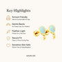 बैलून कलरफुल इनेमल इयररिंग्स को 18 कैरेट गोल्ड प्लेटिंग के साथ सोच-समझकर डिज़ाइन किया गया है जो पानी और पसीने को भी खराब नहीं होने देते। हाइपोएलर्जेनिक और सभी उम्र के बच्चों के लिए सुरक्षित, ये इयररिंग्स स्टाइल से समझौता किए बिना आराम और सुरक्षा प्रदान करते हैं। रोज़ाना पहनने के लिए बिल्कुल सही, ये एक सार्थक एक्सेसरी हैं जो स्वास्थ्य और फैशन दोनों को बढ़ावा देती हैं।