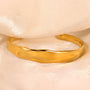 The Bold Wavy Bangle features a distinctive design enhanced with 18k gold plating that is waterproof, sweatproof, and resistant to tarnish. Crafted to be hypoallergenic, it provides comfortable wear suitable for women of all ages. This refined piece effortlessly commands attention, making it a sophisticated addition to any jewelry collection