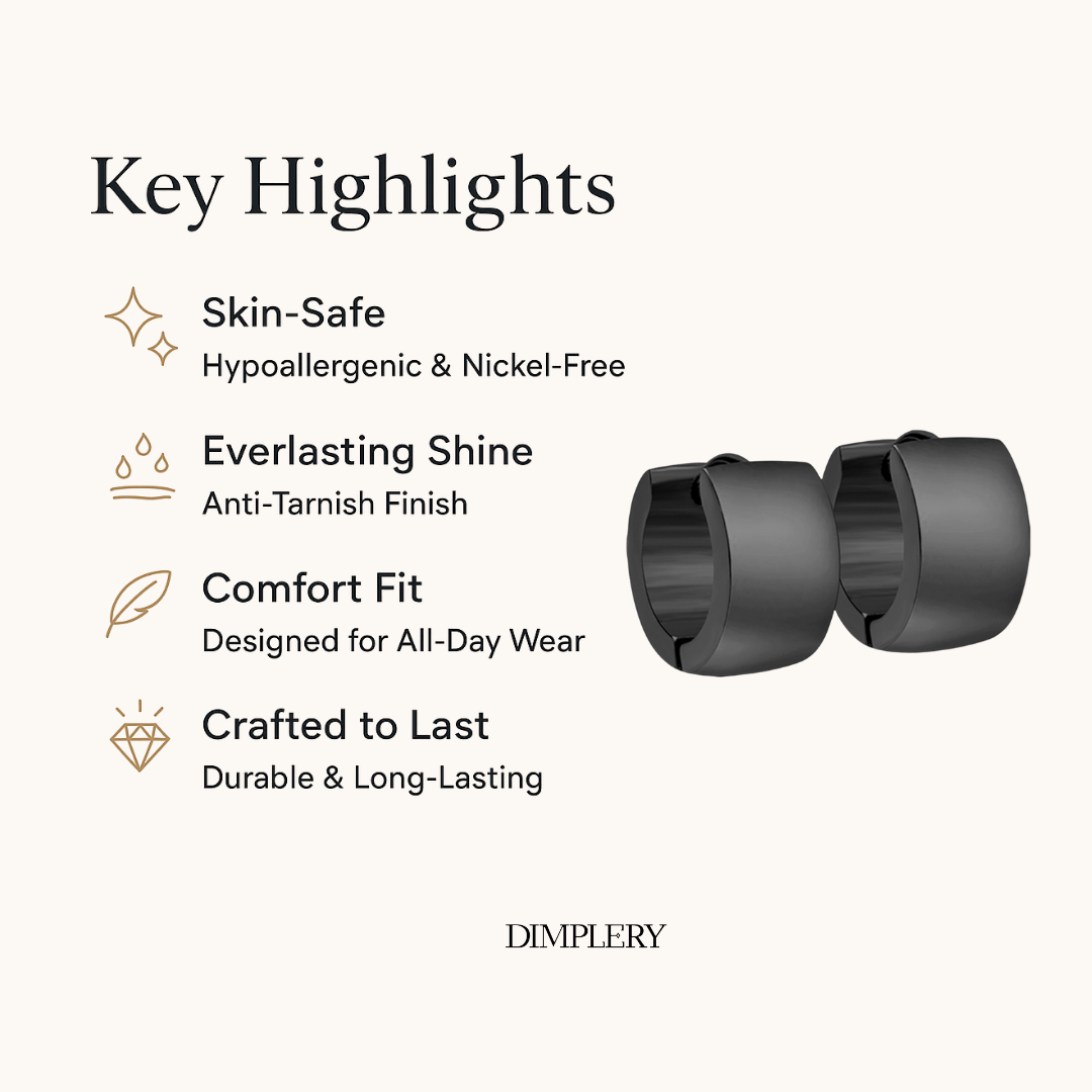 इन बकल हूप इयररिंग्स में 18 कैरेट सोने की शानदार प्लेटिंग है, जो टिकाऊपन और परिष्कृत स्टाइल का मेल है। वाटरप्रूफ, पसीने से सुरक्षित और दाग-धब्बों से मुक्त, ये लंबे समय तक चमक और आराम प्रदान करते हैं। हाइपोएलर्जेनिक और सोच-समझकर डिज़ाइन किए गए, ये सभी उम्र के पुरुषों के लिए एक आदर्श एक्सेसरी हैं जो एक परिष्कृत और कालातीत लुक चाहते हैं।