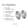 इन बकल हूप इयररिंग्स में 18 कैरेट सोने की शानदार प्लेटिंग है, जो टिकाऊपन और परिष्कृत स्टाइल का मेल है। वाटरप्रूफ, पसीने से सुरक्षित और दाग-धब्बों से मुक्त, ये लंबे समय तक चमक और आराम प्रदान करते हैं। हाइपोएलर्जेनिक और सोच-समझकर डिज़ाइन किए गए, ये सभी उम्र के पुरुषों के लिए एक आदर्श एक्सेसरी हैं जो एक परिष्कृत और कालातीत लुक चाहते हैं।