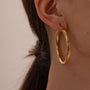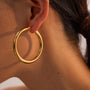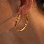 डिम्पलरी के कैनिसा हूप इयररिंग के साथ सादगी की खूबसूरती का अनुभव करें। यह मोटा हूप इयररिंग एक बहुमुखी एक्सेसरी है जो चार आकारों में उपलब्ध है—25 मिमी, 30 मिमी, 40 मिमी और 50 मिमी। 18 कैरेट सोने की परत से बने ये इयररिंग दाग-धब्बों से मुक्त, वाटरप्रूफ और त्वचा के अनुकूल हैं। ये हमारे कड़े/कफ और एक मोटी अंगूठी के साथ बेहद खूबसूरत लगते हैं। एक बड़े हैंडबैग के साथ इस लुक को पूरा करें, जो इसे ऑफिस और कैज़ुअल दोनों तरह के आउटफिट्स के लिए एकदम सही बनाता है।