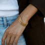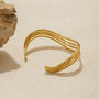 The Classic 3 Wave Bangle showcases elegant 18k gold plating combined with a graceful wave design, perfect for women of all ages. Its waterproof, sweatproof, and anti-tarnish properties ensure lasting shine and durability. Crafted with hypoallergenic materials, this refined accessory offers comfortable wear and effortlessly enhances any outfit with timeless sophistication.