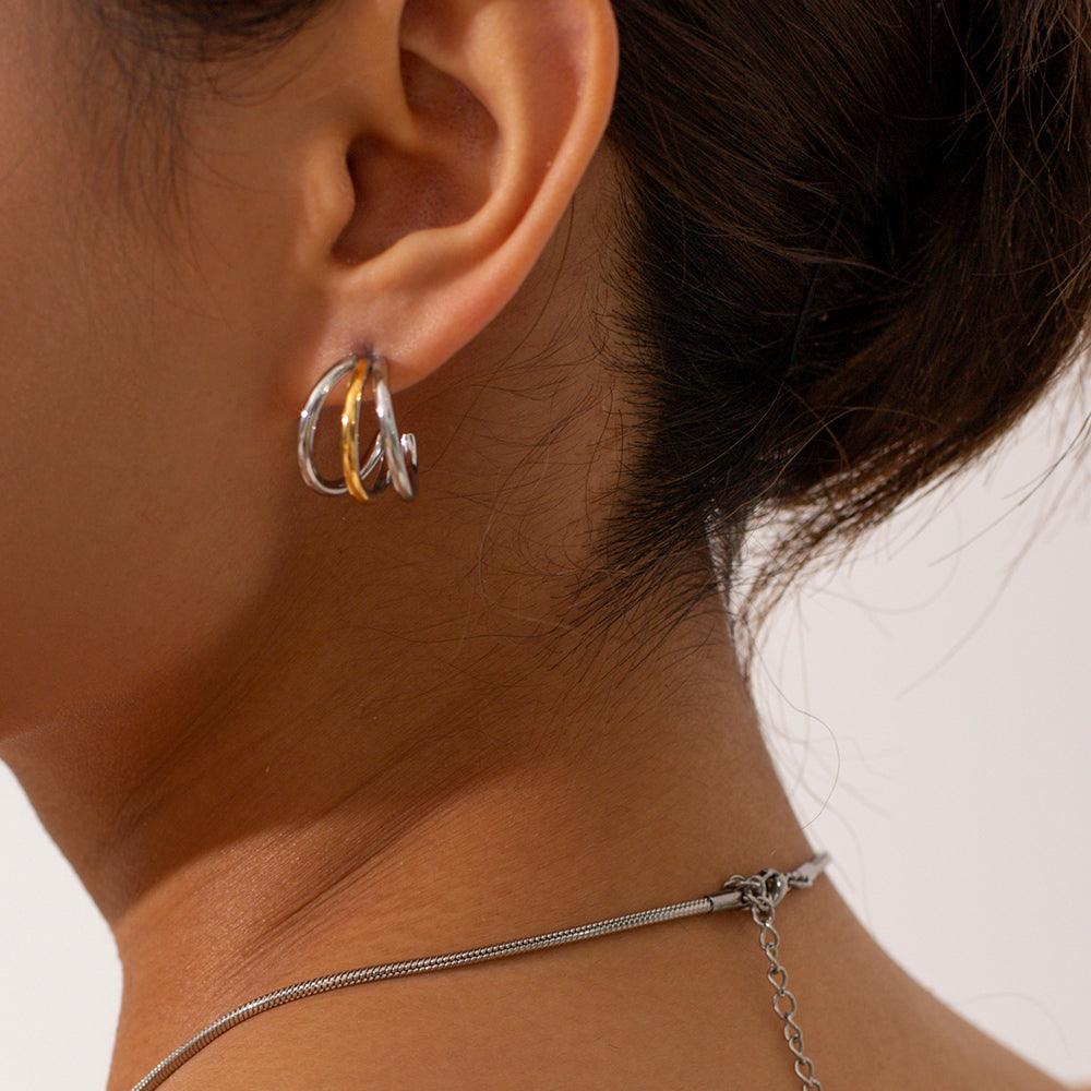 डिम्पलरी के टू-टोन हूप इयररिंग पेश हैं, एक बेहतरीन एक्सेसरी जो तीन छोटे हूप्स को मिलाकर एक शानदार सिंगल हूप डिज़ाइन तैयार करती है। बीच में एक सोने के हूप के साथ दो सिल्वर हूप्स वाला यह टू-टोन इयररिंग रोज़ाना पहनने के लिए एकदम सही है। बारीकी और बारीकी से तैयार किए गए ये इयररिंग एंटी-टर्निश और वाटरप्रूफ़ टिकाऊपन सुनिश्चित करते हैं। डिम्पलरी में, हमारा मिशन लग्ज़री फ़ैशन को किफ़ायती और रोज़ाना पहनने के लिए उपयुक्त बनाना है।