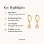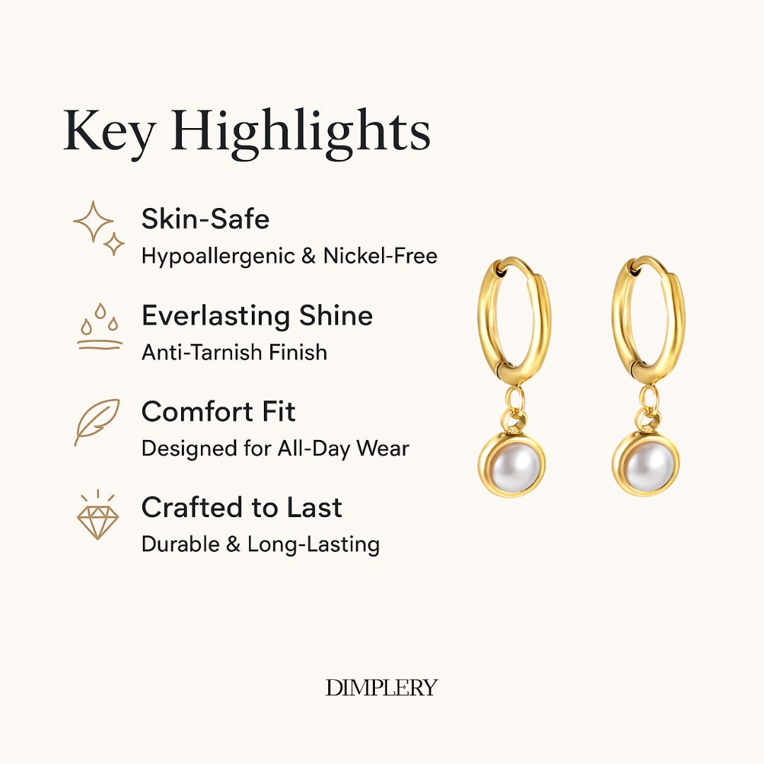 इन डैंगल पर्ल हूप इयररिंग्स में 18 कैरेट सोने की खूबसूरत परत चढ़ी है जो पानी, पसीने और दाग-धब्बों से बचाती है, जिससे इनकी सुंदरता लंबे समय तक बनी रहती है। हाइपोएलर्जेनिक और आरामदायक, ये हर उम्र की महिलाओं के लिए सोच-समझकर डिज़ाइन किए गए हैं जो एक ऐसी परिष्कृत एक्सेसरी की तलाश में हैं जो परिष्कार और टिकाऊपन का मेल हो।