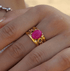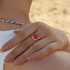 गहरे अंडाकार गुलाबी क्रिस्टल आकार बदलने योग्य अंगूठी