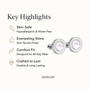 इन डिस्क ल्यूमिना स्टड इयररिंग्स में 18 कैरेट सोने की प्लेटिंग और सुनहरे रंग के उच्च-गुणवत्ता वाले स्टेनलेस स्टील बेस का शानदार संयोजन है, जो एक परिष्कृत और स्थायी चमक प्रदान करता है। वाटरप्रूफ, स्वेटप्रूफ और दाग-धब्बों से मुक्त होने के लिए डिज़ाइन किए गए, ये रोज़ाना इस्तेमाल के साथ अपनी सुंदरता बनाए रखते हैं। हाइपोएलर्जेनिक और मुलायम स्क्रू बैक के साथ डिज़ाइन किए गए, ये बिना किसी जलन के आरामदायक और सुरक्षित फिट प्रदान करते हैं, जिससे ये महिलाओं, लड़कियों और दूसरी बार पियर्सिंग करवाने वालों के लिए उपयुक्त हैं।