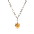 डुअल टोन हार्ट नेकलेस के साथ अपने प्यार का इज़हार करें, जिसमें एक पेपर क्लिप चेन है और एक बड़े दिल के आकार के पेंडेंट से सजाया गया है। यह खूबसूरत नेकलेस उपहार देने के लिए एकदम सही है और दिल के प्रेमियों के लिए आदर्श है, जो किसी भी पोशाक में रोमांस का स्पर्श जोड़ता है। 18 कैरेट सोने की परत से बना, यह नेकलेस दाग-धब्बों से बचाता है और वाटरप्रूफ भी है, जिससे यह स्नेह का स्थायी प्रतीक बना रहता है। अपने दिल को छू लेने वाले लुक को पूरा करने के लिए इसे हमारे हार्ट चार्म ब्रेसलेट के साथ पहनें। यह बहुमुखी नेकलेस भारतीय और पश्चिमी, दोनों ही तरह के परिधानों के साथ खूबसूरती से मेल खाता है।