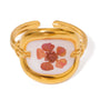 हमारी इटरनल व्हाइट स्क्वायर रिसाइज़ेबल रिंग के साथ अपने लुक में विंटेज ग्लैमर का तड़का लगाएँ। 18 कैरेट गोल्ड प्लेटेड स्टेनलेस स्टील की इस अंगूठी में एक नाज़ुक चौकोर रेज़िन फूल है, जो इसे खूबसूरत और बहुमुखी बनाता है। अपने एडजस्टेबल ओपन डिज़ाइन के साथ, यह किसी भी उंगली के आकार के लिए एकदम सही है।