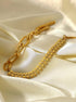डिम्पलरी के हाफ चेन हाफ ज़िरकोनिक बकल ब्रेसलेट के अनोखे आकर्षण का अनुभव करें, यह एक आकर्षक ब्रेसलेट है जो दो अलग-अलग शैलियों का संगम है। ब्रेसलेट के एक हिस्से में चमकदार ज़िरकोन रत्न जड़े हैं, जबकि दूसरे हिस्से में एक मोटी चेन डिज़ाइन है, जो सुंदरता और धार का एक बेहतरीन मिश्रण प्रस्तुत करता है। 18 कैरेट सोने की परत से बना, यह दाग-धब्बों से मुक्त और वाटरप्रूफ है, जो इसकी स्थायी सुंदरता और टिकाऊपन सुनिश्चित करता है। डिम्पलरी में, हम सभी महिलाओं के लिए विलासिता को सुलभ और किफ़ायती बनाने के लिए प्रतिबद्ध हैं।