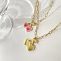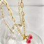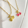 हार्टी फ्रूटी नेकलेस - पिंक (गुलाबी) के साथ अपनी स्टाइल में एक चंचल आकर्षण का स्पर्श जोड़ें। इसमें दो दिल के आकार के पेंडेंट और एक पत्ती के साथ एक पतली, इंटरलूप्ड चेन डिज़ाइन है, जो एक फल जैसा लुक देता है। यह मनमोहक आभूषण कॉलेज जाने वालों और कैज़ुअल पहनावे के लिए एकदम सही है, और कुर्तियों और अन्य कैज़ुअल आउटफिट्स के साथ बेहद खूबसूरती से मेल खाता है। 18 कैरेट सोने की परत से बना, यह नेकलेस एंटी-टार्निश और वाटरप्रूफ दोनों है, जो यह सुनिश्चित करता है कि यह आपके ज्वेलरी कलेक्शन में हमेशा के लिए समाहित रहे। अपने मज़ेदार और जवां लुक को पूरा करने के लिए इसे हमारे ब्रेसलेट और स्टड इयररिंग्स के साथ पहनें। इस नेकलेस का अनोखा डिज़ाइन इसे किसी भी अलमारी के लिए एक बेहतरीन एक्सेसरी बनाता है।