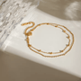 एक शानदार बीड लेयर्ड पायल के साथ अपने ज्वेलरी कलेक्शन में चार चाँद लगाएँ। इस 18 कैरेट गोल्ड प्लेटेड चेन में छोटे-छोटे सोने के मोती और एक साधारण पतली चेन है जो एक खूबसूरत लेयर्ड इफ़ेक्ट देती है। किसी भी आउटफिट के लिए परफेक्ट, यह बहुमुखी पायल एक ज़रूरी एक्सेसरी है।