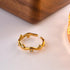 डिम्पलरी की जूडी रिसाइज़ेबल रिंग के नाज़ुक आकर्षण का अनुभव करें, जिसमें हर लहर में चमकदार सफ़ेद पत्थरों से सजी एक खूबसूरत लहरदार डिज़ाइन है। यह पतली, परिष्कृत अंगूठी रोज़ाना पहनने के लिए एकदम सही है, जो आपकी स्टाइल में एक सूक्ष्म लालित्य का स्पर्श जोड़ती है। 18 कैरेट सोने की परत से बनी, यह दाग-धब्बों से मुक्त और वाटरप्रूफ है, जो इसकी स्थायी सुंदरता और टिकाऊपन सुनिश्चित करती है। रिसाइज़ेबल डिज़ाइन एकदम सही फिटिंग की गारंटी देता है, जो स्टाइल और व्यावहारिकता का मिश्रण है। डिम्पलरी में, हम सभी महिलाओं के लिए विलासिता को सुलभ और किफ़ायती बनाने के लिए समर्पित हैं।