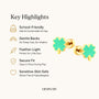 किड्स क्लोवर इनेमल कोटेड स्टड में आकर्षक बर्ड्स इयररिंग्स शामिल हैं, जिनमें सुरक्षित स्क्रू क्लोज़र और 18 कैरेट गोल्ड प्लेटिंग है जो लंबे समय तक चमक सुनिश्चित करती है। ये इयररिंग्स वाटरप्रूफ, स्वेटप्रूफ और दाग-धब्बों से सुरक्षित हैं, जो इन्हें रोज़ाना इस्तेमाल के लिए आदर्श बनाते हैं। हाइपोएलर्जेनिक और संवेदनशील त्वचा पर कोमल, ये सभी उम्र के बच्चों के लिए उपयुक्त हैं, आराम और स्टाइल दोनों प्रदान करते हैं। यह आपके बच्चे के कानों की सुरक्षा के साथ-साथ उनके लुक में एक प्यारा और स्टाइलिश विवरण जोड़ने का एक बेहतरीन तरीका है।