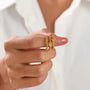 डिम्पलरी की लूना लेयर्ड रिसाइज़ेबल रिंग के साथ दिव्य सुंदरता का अनुभव करें। इसमें सूर्य और चंद्रमा की दो अलग-अलग पंक्तियों में आपस में जुड़ी हुई अंगूठियों के साथ एक मनमोहक डिज़ाइन है। यह अनोखा आभूषण किसी भी पोशाक में एक अलौकिक आकर्षण का स्पर्श जोड़ता है, जो इसे विशेष अवसरों और रोज़ाना पहनने, दोनों के लिए एकदम सही बनाता है। 18 कैरेट सोने की परत से निर्मित, यह दाग-धब्बों से मुक्त और जलरोधी है, जो इसकी स्थायी सुंदरता और स्थायित्व सुनिश्चित करता है। रिसाइज़ेबल डिज़ाइन एक बेहतरीन फिट सुनिश्चित करता है, जो स्टाइल और व्यावहारिकता का मिश्रण है। डिम्पलरी में, हम सभी महिलाओं के लिए विलासिता को सुलभ और किफ़ायती बनाने के लिए समर्पित हैं।
