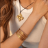 हमारे आभूषण 18K/14K सोने की परत चढ़ी स्टेनलेस स्टील और प्रीमियम धातुओं से बने हैं:
