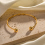 डिम्पलरी का खूबसूरत ओपन बीड कड़ा देखें, जो एक साधारण लेकिन शानदार एक्सेसरी है जो कालातीत परिष्कार का प्रतीक है। यह पतला कफ ब्रेसलेट नाज़ुक सोने के मोतियों से सजा है, उच्च गुणवत्ता वाले स्टेनलेस स्टील से बना है और टिकाऊ, वाटरप्रूफ 18 कैरेट सोने से मढ़ा हुआ है। इसका मिनिमलिस्ट डिज़ाइन इसे उन लोगों के लिए एक आदर्श विकल्प बनाता है जो एक ऐसी एक्सेसरी चाहते हैं जो स्टाइलिश और त्वचा के अनुकूल दोनों हो।