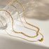 ओर्ब लेयर्ड नेकलेस की परिष्कृतता को उजागर करें, यह एक नाज़ुक और खूबसूरत आभूषण है जिसमें सुनहरे मनके की गेंद से बना एक पेंडेंट है। रोज़ाना पहनने के लिए आदर्श, यह अनुकूलनीय नेकलेस चंकी स्टड और ब्रेसलेट, दोनों के साथ एक शानदार पूरक है, जो साड़ी और कुर्तियों से लेकर पश्चिमी परिधानों तक, किसी भी लुक को पूरा करता है। 18 कैरेट सोने की परत से बना, यह नेकलेस दाग-धब्बों से मुक्त और वाटरप्रूफ है, जो इसकी कालातीत सुंदरता और मजबूती सुनिश्चित करता है।