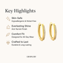 स्टाइलिंग टिप : ओवेल ज़िरकोनिया हूप इयररिंग्स किसी भी आउटफिट में एक परिष्कृत और आकर्षक लुक जोड़ते हैं। इन्हें एक स्लीक अपडू और एक टेलर्ड ब्लेज़र के साथ पहनकर एक पॉलिश्ड ऑफिस लुक पाएँ, या किसी ख़ास मौके पर अपनी खूबसूरती बढ़ाने के लिए इन्हें एक फ्लोइंग इवनिंग ड्रेस के साथ पहनें। इनका बहुमुखी डिज़ाइन कैज़ुअल और फ़ॉर्मल, दोनों ही स्टाइल को कॉम्प्लीमेंट करता है, जिससे ये उन महिलाओं के लिए एक ज़रूरी एक्सेसरी बन जाते हैं जो कालातीत ग्रेस पसंद करती हैं।