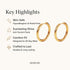 डिम्पलरी के छोटे, सुंदर हूप इयररिंग पेश हैं, जो 2.5 मिमी मोटाई वाला एक आकर्षक और खूबसूरत एक्सेसरी है, जो 16 मिमी में उपलब्ध है। ये हूप रोज़ाना पहनने के लिए एकदम सही हैं, और बहुमुखी प्रतिभा और स्टाइल प्रदान करते हैं। 18 कैरेट सोने की परत से बने, ये दाग-धब्बों से मुक्त और वाटरप्रूफ हैं, जो इनकी स्थायी सुंदरता और टिकाऊपन सुनिश्चित करते हैं। डिम्पलरी में, हम सभी महिलाओं के लिए विलासिता को सुलभ और किफ़ायती बनाने के लिए प्रतिबद्ध हैं।
