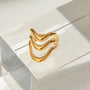 यह आकार बदलने योग्य अंगूठी 18 कैरेट सोने की परत चढ़ी स्टेनलेस स्टील से बनी है, जो इसे टिकाऊ और सुंदर बनाती है। लहरदार कटआउट डिज़ाइन इसे एक ट्रेंडी और अनियमित स्पर्श देता है, जबकि खुली अंगूठी की शैली समायोज्य आकार की अनुमति देती है। इसका न्यूनतम रूप किसी भी अवसर के लिए एकदम सही है।