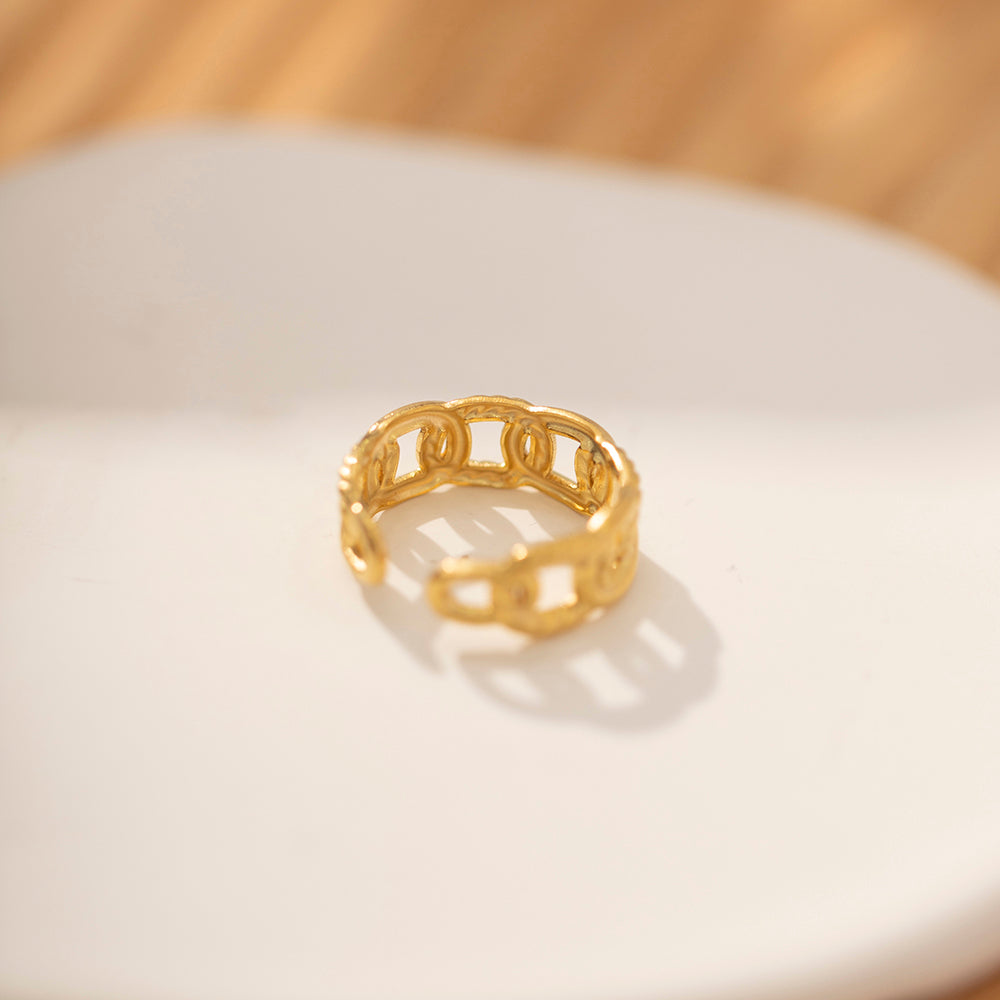 रॉयल लूप रिसाइज़ेबल रिंग के साथ अपनी स्टाइल को और निखारें, जिसे 18 कैरेट सोने की परत चढ़ाकर एक स्थायी और परिष्कृत फ़िनिश के लिए विशेष रूप से तैयार किया गया है। इसका वाटरप्रूफ और स्वेटप्रूफ डिज़ाइन रोज़ाना पहनने पर भी स्थायी सुंदरता सुनिश्चित करता है, जबकि एंटी-टार्निश और हाइपोएलर्जेनिक गुण इसे सभी उम्र के लोगों के लिए एक आरामदायक विकल्प बनाते हैं। रिसाइज़ेबल फ़ीचर एक परफेक्ट फिट की गारंटी देता है, जो एक कालातीत एक्सेसरी में परिष्कार और व्यावहारिकता का मिश्रण है।