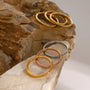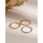 हमारे 3 स्टैकेबल रिंग के सेट के साथ अपनी स्टाइल को और निखारें। उच्च गुणवत्ता वाले 18K PVD गोल्ड प्लेटेड स्टेनलेस स्टील से बनी ये रिंग रोज़ाना पहनने के लिए बिल्कुल सही हैं। एक बहुमुखी और आकर्षक लुक के लिए गोल्ड, सिल्वर और रोज़ गोल्ड को मिक्स एंड मैच करें। किसी भी महिला के ज्वेलरी कलेक्शन में एक ज़रूरी चीज़।