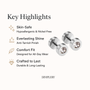 ये सिल्वर फ्लैट स्क्रू बैक राउंड डायमंड स्टड 18 कैरेट गोल्ड प्लेटिंग से खूबसूरती से तैयार किए गए हैं, जो वाटरप्रूफ, स्वेटप्रूफ और एंटी-टार्निश फिनिश प्रदान करते हैं। हाइपोएलर्जेनिक होने के कारण, ये सभी उम्र के लोगों के लिए आराम और सुरक्षा प्रदान करते हैं। इनका सुरक्षित स्क्रू बैक सुनिश्चित करता है कि ये अपनी जगह पर बने रहें, जिससे ये रोज़ाना पहनने के लिए एक विश्वसनीय और सुंदर एक्सेसरी बन जाते हैं।