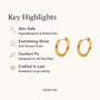 डिम्पलरी के छोटे, सुंदर हूप इयररिंग पेश हैं, जो 2.5 मिमी मोटाई वाला एक आकर्षक और खूबसूरत एक्सेसरी है, जो 10 मिमी में उपलब्ध है। ये हूप रोज़ाना पहनने के लिए एकदम सही हैं, और बहुमुखी प्रतिभा और स्टाइल प्रदान करते हैं। 18 कैरेट सोने की परत से बने, ये दाग-धब्बों से मुक्त और वाटरप्रूफ हैं, जो इनकी स्थायी सुंदरता और टिकाऊपन सुनिश्चित करते हैं। डिम्पलरी में, हम सभी महिलाओं के लिए विलासिता को सुलभ और किफ़ायती बनाने के लिए प्रतिबद्ध हैं।