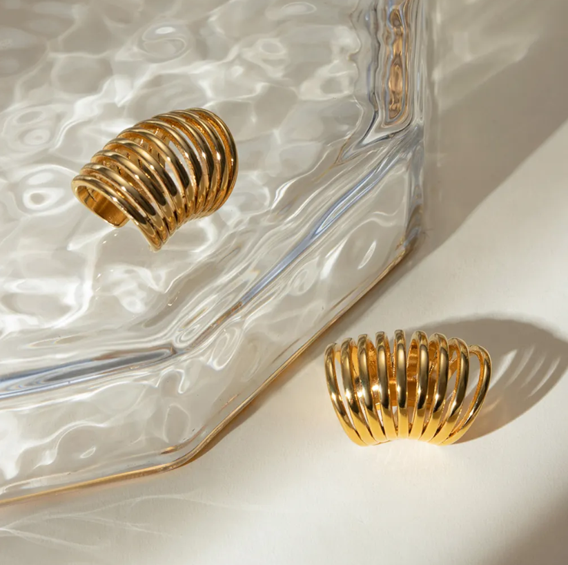 हमारे आभूषण 18K/14K सोने की परत चढ़ी स्टेनलेस स्टील और प्रीमियम धातुओं से बने हैं: