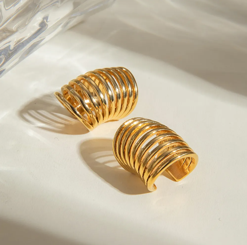 डिम्पलरी के स्टैकिंग ईयर कफ़ इयररिंग के साथ अपनी स्टाइल को और निखारें। यह एक आकर्षक एक्सेसरी है जिसमें पतले छल्लों की एक श्रृंखला है जो एक बोल्ड, चंकी ईयर कफ़ बनाने के लिए आपस में जुड़ी हुई है। स्लीक हेयरस्टाइल और बॉडीकॉन ड्रेसेस के लिए बिल्कुल सही, यह इयररिंग आपके लुक में एक नयापन और चार चाँद लगा देता है। 18 कैरेट गोल्ड प्लेटिंग से बना, यह एंटी-टार्निश और वाटरप्रूफ है, जो इसकी स्थायी सुंदरता और टिकाऊपन सुनिश्चित करता है। डिम्पलरी में, हम सभी महिलाओं के लिए विलासिता को सुलभ और किफ़ायती बनाने के लिए प्रतिबद्ध हैं।
