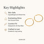 स्टाइलिंग टिप: छोटे हूप्स रोज़ाना के काम के लिए एकदम सही हैं, जो आपके पहनावे में एक खूबसूरत एहसास जोड़ते हैं। बड़े हूप्स को लंबी ड्रेस और गाउन के साथ खूबसूरती से पेयर करके और भी ग्लैमरस लुक दिया जा सकता है। इन इयररिंग्स को हमारी चंकी रिंग और कफ के साथ पहनकर अपने पहनावे को पूरा करें। डिम्पलरी में, हम लग्ज़री फ़ैशन को सभी के लिए सुलभ और किफ़ायती बनाने के लिए प्रतिबद्ध हैं। अपनी अनूठी शैली के अनुरूप और भी बेहतरीन और सदाबहार पीस के लिए हमारे कलेक्शन को देखें।