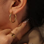 पेश हैं ट्विस्टी हूप इयररिंग्स, आपके ज्वेलरी कलेक्शन में एक स्टाइलिश और बहुमुखी जोड़। ये मोटे, ट्विस्टी-टेक्सचर्ड 35 मिमी हूप इयररिंग्स आपको किसी भी अवसर के लिए एकदम सही फिटिंग चुनने की सुविधा देते हैं। 18 कैरेट गोल्ड प्लेटिंग से बने, ये एंटी-टार्निश, वाटरप्रूफ और त्वचा के अनुकूल हैं, जो टिकाऊपन और आराम सुनिश्चित करते हैं।