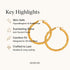 स्टाइलिंग टिप: छोटे हूप्स रोज़ाना के काम के लिए एकदम सही हैं, जो आपके पहनावे में एक खूबसूरत एहसास जोड़ते हैं। बड़े हूप्स को लंबी ड्रेस और गाउन के साथ खूबसूरती से पेयर करके और भी ग्लैमरस लुक दिया जा सकता है। इन इयररिंग्स को हमारी चंकी रिंग और कफ के साथ पहनकर अपने पहनावे को पूरा करें। डिम्पलरी में, हम लग्ज़री फ़ैशन को सभी के लिए सुलभ और किफ़ायती बनाने के लिए प्रतिबद्ध हैं। अपनी अनूठी शैली के अनुरूप और भी बेहतरीन और सदाबहार पीस के लिए हमारे कलेक्शन को देखें।
