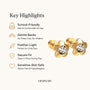 ये ज़िरकोनिया फ्लावर स्टड इयररिंग्स 18 कैरेट गोल्ड प्लेटिंग से खूबसूरती से तैयार किए गए हैं, जो इन्हें टिकाऊ और चमकदार फ़िनिश देते हैं। वाटरप्रूफ, स्वेटप्रूफ और दाग-धब्बों से सुरक्षित, ये रोज़ाना पहनने पर भी अपनी खूबसूरती बनाए रखते हैं। हाइपोएलर्जेनिक और संवेदनशील त्वचा के लिए सुरक्षित, ये इयररिंग्स सभी उम्र की महिलाओं के लिए उपयुक्त हैं, एक आरामदायक और कालातीत एक्सेसरी प्रदान करते हैं जो किसी भी लुक को एक सूक्ष्म चमक से निखार देती है।
