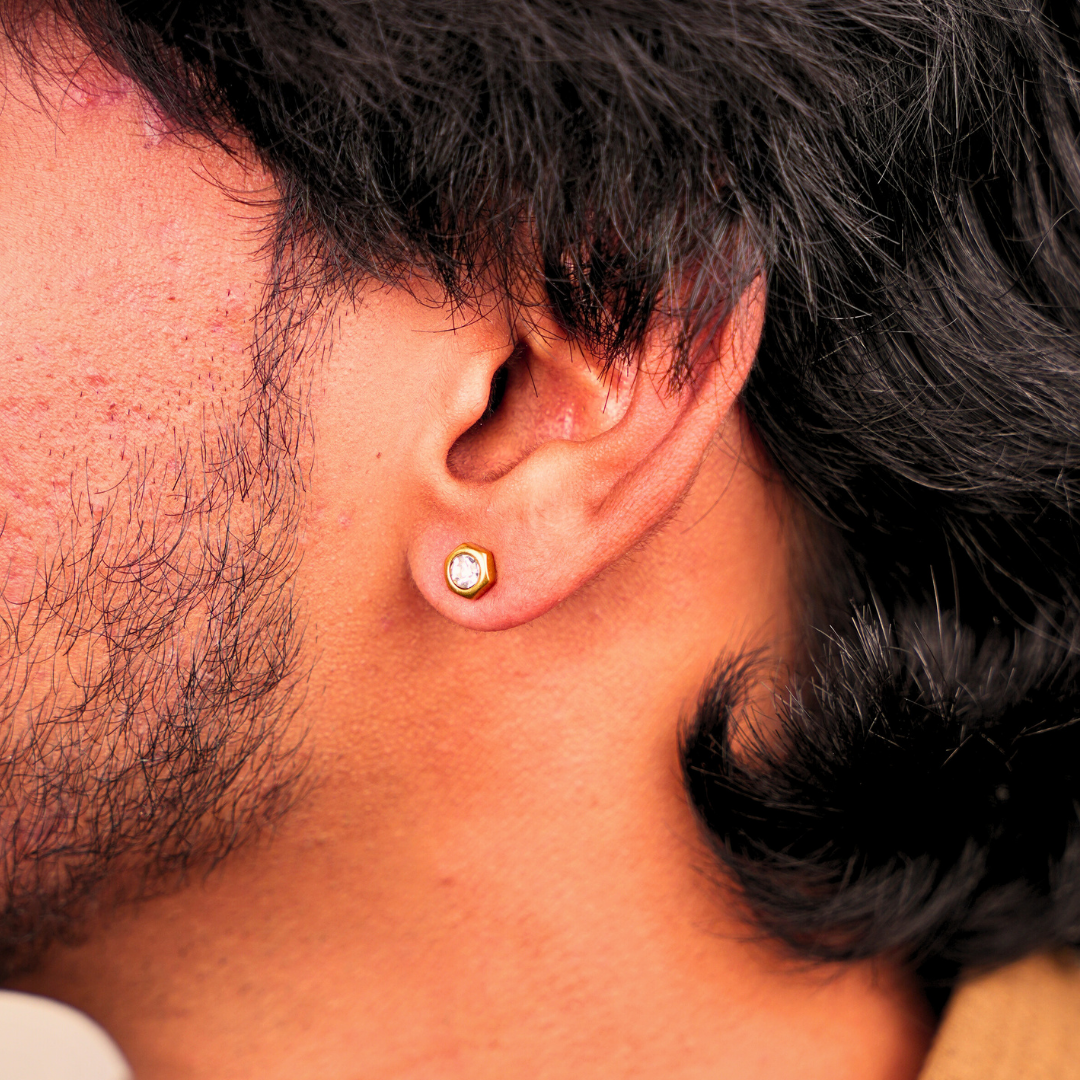 These Hexagon Stud Earrings feature elegant 18k gold plating paired with a gold-toned, high-quality stainless steel base, delivering a sophisticated and enduring shine. Crafted to be waterproof, sweatproof, and resistant to tarnish, they retain their beauty with everyday use. Hypoallergenic and designed with a soft screw back, they provide a comfortable and secure fit without irritation, making them suitable for women, girls, and those with second piercings.