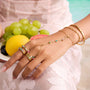 This Versatile Finger Multicolor Bracelet is meticulously 18k gold plated to provide enduring shine and elegance. Waterproof, sweatproof, and resistant to tarnish, it ensures lasting wear in all conditions. Crafted to be hypoallergenic, it offers comfort and style for women of every age, making it a timeless addition to any jewelry collection.