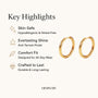 Styling Tip: Pair the Small Dainty Hoop Earring with our statement kada or a thick bracelet for a coordinated and sophisticated look. Additionally, you have the option to purchase these earrings as a 3-pair set at an affordable price, allowing you to style them according to your needs. Explore our collection for more stunning pieces to complement your style!